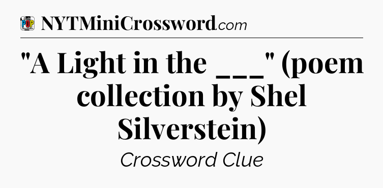 The clue “”A Light in the ___” (poem collection by Shel Silverstein)” most recently appeared in a Daily Pop Plus Crossword on September 30, 2025.