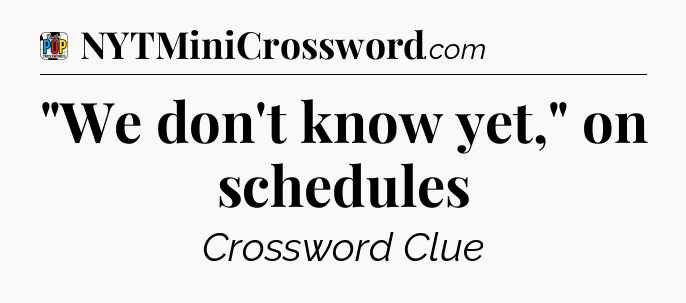 There is 1 possible answer for the crossword clue “”We don’t know yet,” on schedules”.