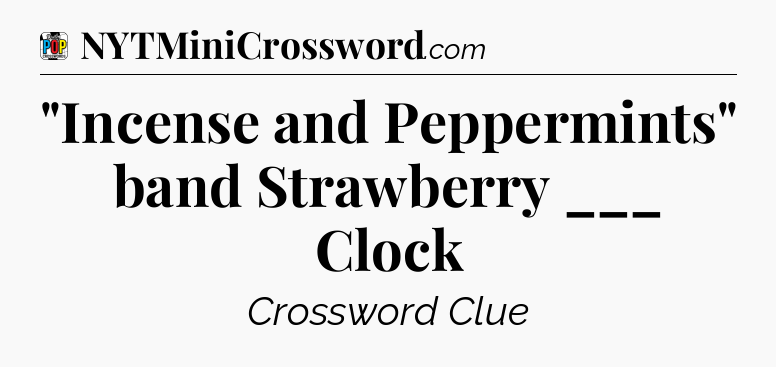 The clue “”Incense and Peppermints” band Strawberry ___ Clock” most recently appeared in a Daily Pop Plus Crossword on September 9, 2025.