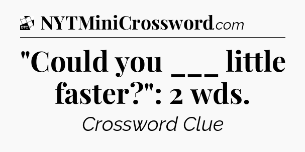 The clue “”Could you ___ little faster?”: 2 wds” most recently appeared in a Daily Themed Classic Crossword on January 8, 2025.