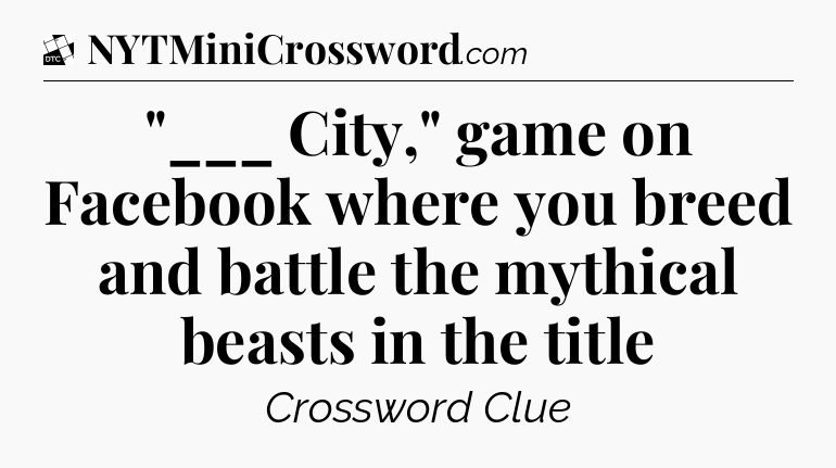 The clue “”___ City,” game on Facebook where you breed and battle the mythical beasts in the title” most recently appeared in a Daily Themed Classic Crossword on October 10, 2025.