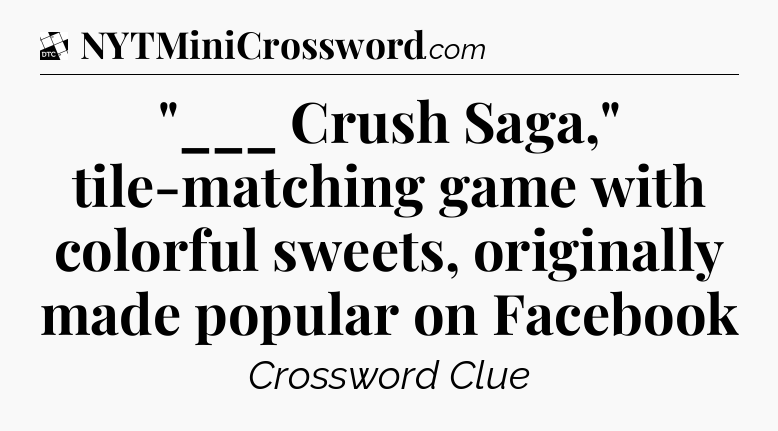 This simple page contains the answer to the crossword clue ‘“___ Crush Saga,” tile-matching game with colorful sweets, originally made popular on Facebook‘ that was published in Daily Themed Crossword October 10 2025.