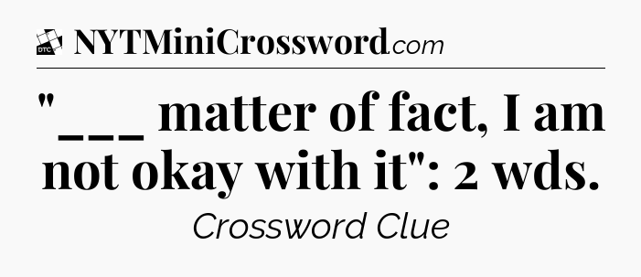 What is the answer to the clue “”___ matter of fact, I am not okay with it”: 2 wds”?