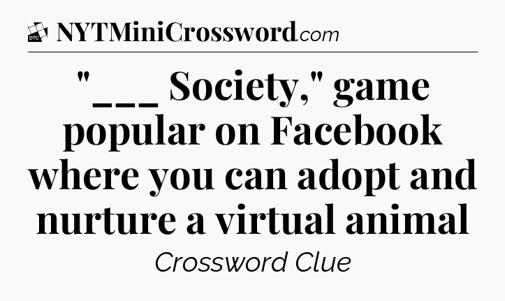 The clue “”___ Society,” game popular on Facebook where you can adopt and nurture a virtual animal” most recently appeared in a Daily Themed Classic Crossword on October 10, 2025.