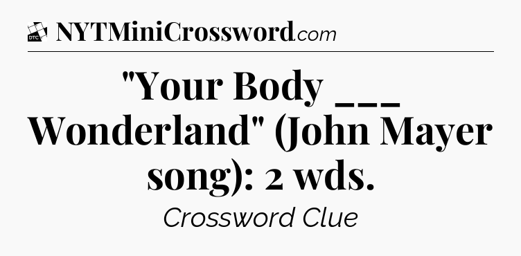 The clue “”Your Body ___ Wonderland” (John Mayer song): 2 wds” most recently appeared in a Daily Themed Classic Crossword on October 10, 2025.