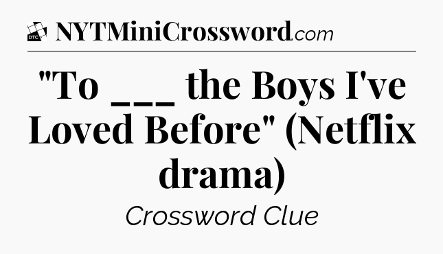 The clue “”To ___ the Boys I’ve Loved Before” (Netflix drama)” most recently appeared in a Daily Themed Classic Crossword on October 13, 2022.