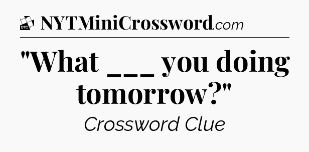 The clue “”What ___ you doing tomorrow?”” most recently appeared in a Daily Themed Classic Crossword on October 19, 2024.