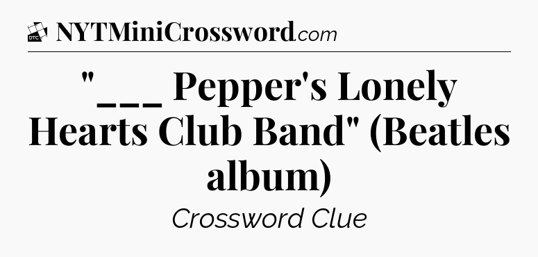 The clue “”___ Pepper’s Lonely Hearts Club Band” (Beatles album)” most recently appeared in a Daily Themed Classic Crossword on October 27, 2023.