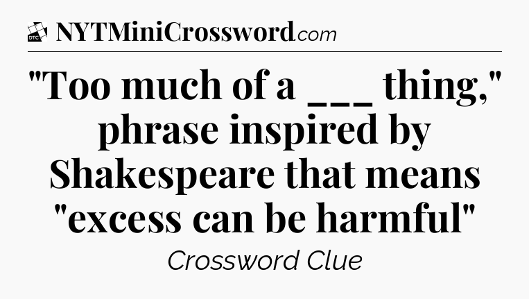 The Answer for ‘”Too much of a ___ thing,” phrase inspired by Shakespeare that means “excess can be harmful”‘ Crossword Clue is: