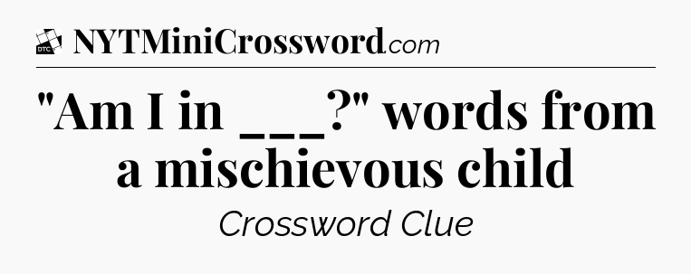 The clue “”Am I in ___?” words from a mischievous child” most recently appeared in a Daily Themed Classic Crossword on October 4, 2025.