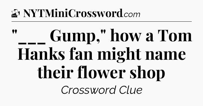 There is 1 possible answer for the crossword clue “”___ Gump,” how a Tom Hanks fan might name their flower shop”.