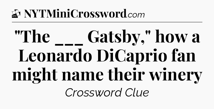 The clue “”The ___ Gatsby,” how a Leonardo DiCaprio fan might name their winery” most recently appeared in a Daily Themed Classic Crossword on October 6, 2024.