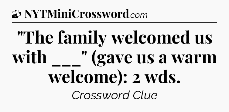 What is the answer to the clue “”The family welcomed us with ___” (gave us a warm welcome): 2 wds”?