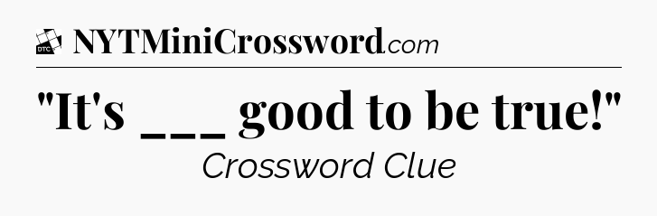 The clue “”It’s ___ good to be true!”” most recently appeared in a Daily Themed Classic Crossword on October 9, 2025.