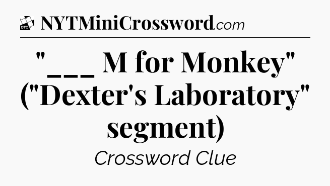 The clue “”___ M for Monkey” (“Dexter’s Laboratory” segment)” most recently appeared in a Daily Themed Classic Crossword on November 1, 2022.