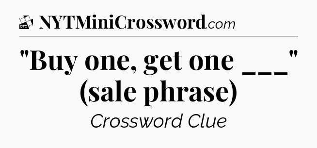 The clue “”Buy one, get one ___” (sale phrase)” most recently appeared in a Daily Themed Classic Crossword on November 12, 2022.