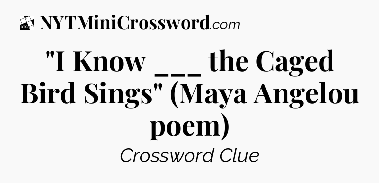 The clue “”I Know ___ the Caged Bird Sings” (Maya Angelou poem)” most recently appeared in a Daily Themed Classic Crossword on November 2, 2022.