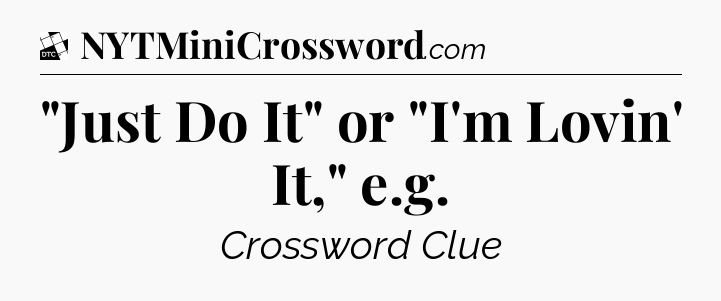 The clue “”Just Do It” or “I’m Lovin’ It,” e.g” most recently appeared in a Daily Themed Classic Crossword on November 27, 2022.