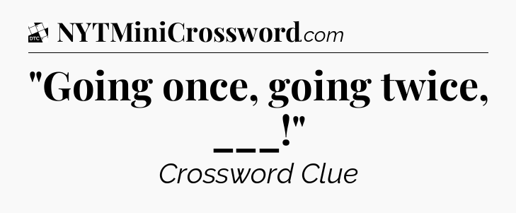 The clue “”Going once, going twice, ___!”” most recently appeared in a Daily Themed Classic Crossword on November 29, 2023.