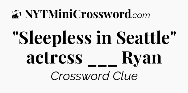 There is 1 possible answer for the crossword clue “”Sleepless in Seattle” actress ___ Ryan”.