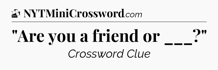 The Answer for ‘”Are you a friend or ___?”‘ Crossword Clue is: