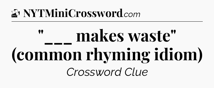 The clue “”___ makes waste” (common rhyming idiom)” most recently appeared in a Daily Themed Classic Crossword on November 9, 2023.