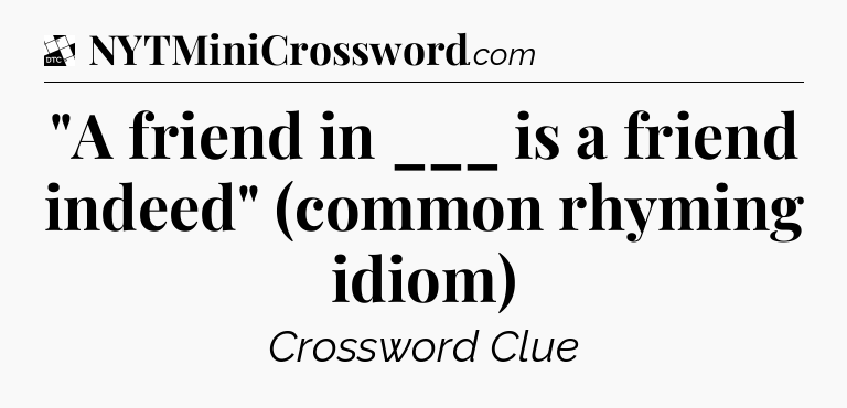 The clue “”A friend in ___ is a friend indeed” (common rhyming idiom)” most recently appeared in a Daily Themed Classic Crossword on November 9, 2023.