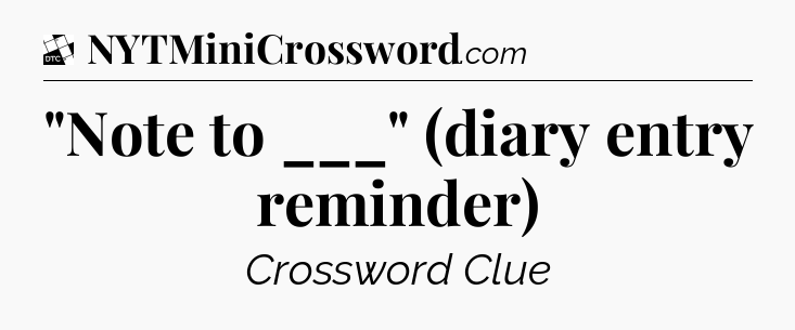 The clue “”Note to ___” (diary entry reminder)” most recently appeared in a Daily Themed Classic Crossword on December 14, 2022.