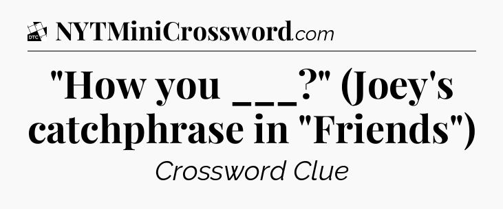 The clue “”How you ___?” (Joey’s catchphrase in “Friends”)” most recently appeared in a Daily Themed Classic Crossword on December 23, 2024.