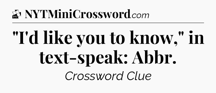 The Answer for ‘”I’d like you to know,” in text-speak: Abbr’ Crossword Clue is:
