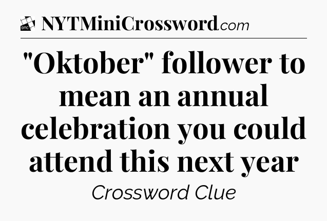 The clue “”Oktober” follower to mean an annual celebration you could attend this next year” most recently appeared in a Daily Themed Classic Crossword on December 31, 2024.