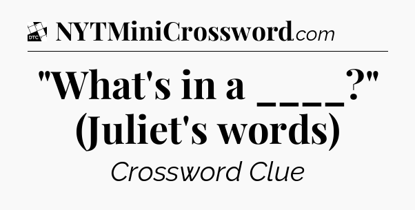 The clue “”What’s in a ____?” (Juliet’s words)” most recently appeared in a Daily Themed Classic Crossword on December 9, 2022.