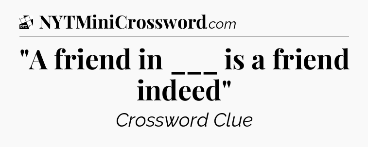 The Answer for ‘”A friend in ___ is a friend indeed”‘ Crossword Clue is: