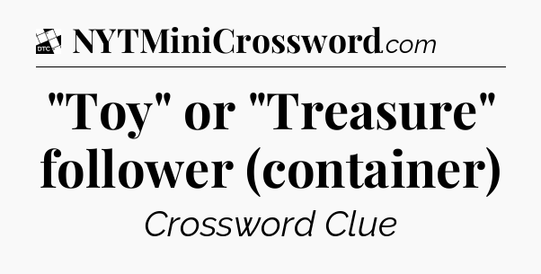 The clue “”Toy” or “Treasure” follower (container)” most recently appeared in a Daily Themed Classic Crossword on February 12, 2023.