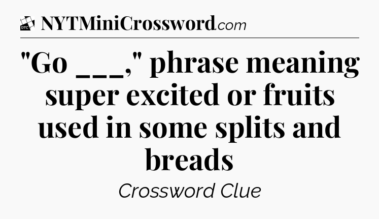 The clue “”Go ___,” phrase meaning super excited or fruits used in some splits and breads” most recently appeared in a Daily Themed Classic Crossword on February 15, 2025.