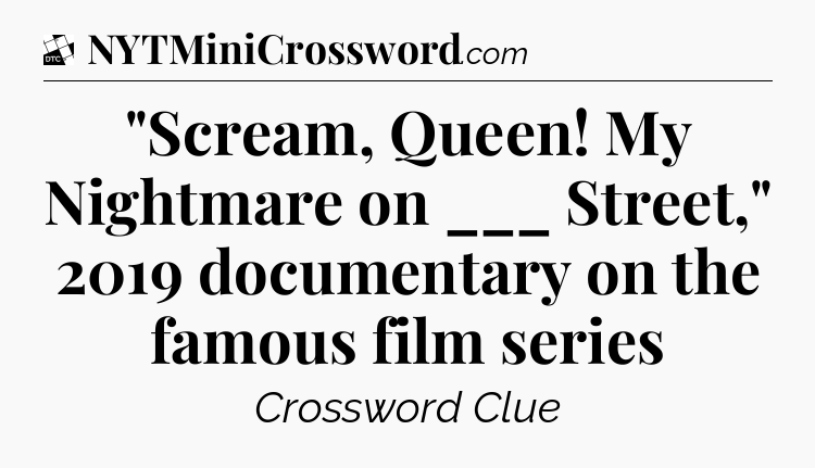 The clue “”Scream, Queen! My Nightmare on ___ Street,” 2019 documentary on the famous film series” most recently appeared in a Daily Themed Classic Crossword on February 22, 2024.