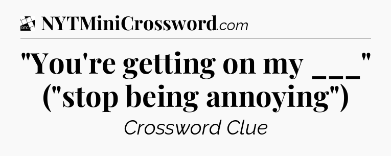 The Answer for ‘”You’re getting on my ___” (“stop being annoying”)’ Crossword Clue is: