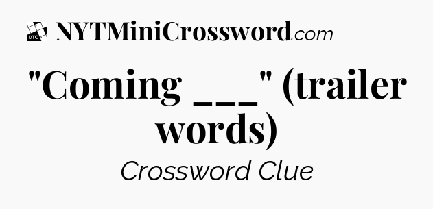 The clue “”Coming ___” (trailer words)” most recently appeared in a Daily Themed Classic Crossword on February 24, 2024.