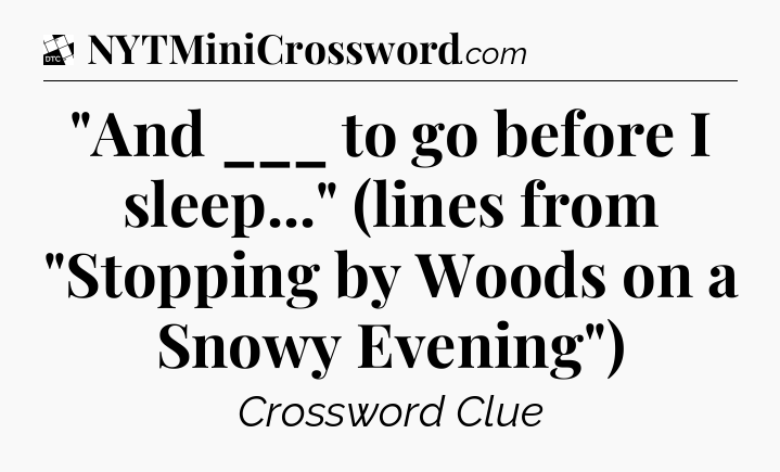 The clue “”And ___ to go before I sleep…” (lines from “Stopping by Woods on a Snowy Evening”)” most recently appeared in a Daily Themed Classic Crossword on March 11, 2023.