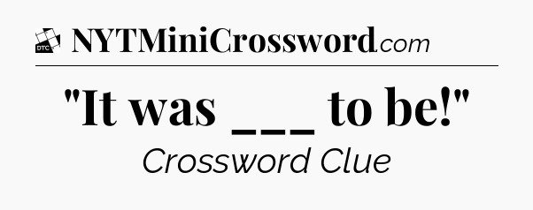 The Answer for ‘”It was ___ to be!”‘ Crossword Clue is: