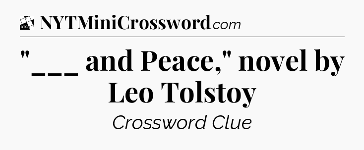 The clue “”___ and Peace,” novel by Leo Tolstoy” most recently appeared in a Daily Themed Classic Crossword on March 12, 2023.