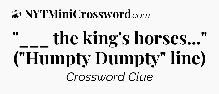 The clue “”___ the king’s horses…” (“Humpty Dumpty” line)” most recently appeared in a Daily Themed Classic Crossword on March 12, 2025.
