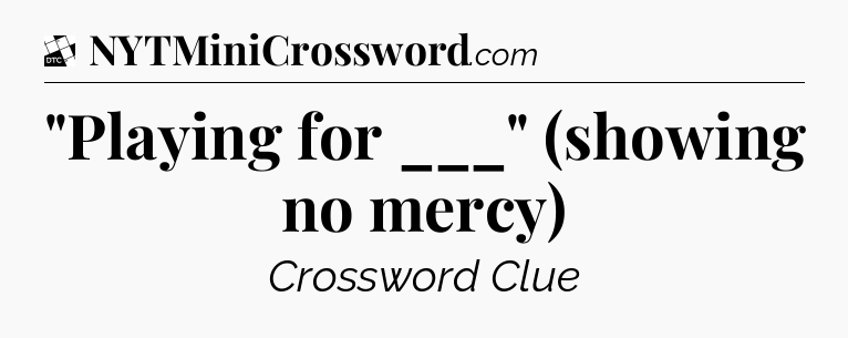 The Answer for ‘”Playing for ___” (showing no mercy)’ Crossword Clue is: