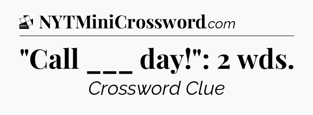 The Answer for ‘”Call ___ day!”: 2 wds’ Crossword Clue is: