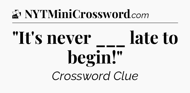 The clue “”It’s never ___ late to begin!”” most recently appeared in a Daily Themed Classic Crossword on March 20, 2024.