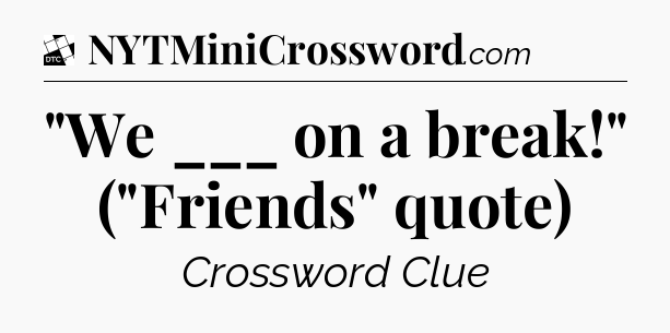 “”We ___ on a break!” (“Friends” quote)” Daily Themed Classic Crossword Clue: Frequently Asked Questions