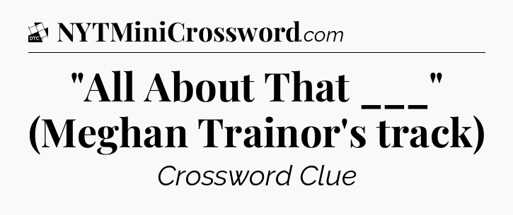 The clue “”All About That ___” (Meghan Trainor’s track)” most recently appeared in a Daily Themed Classic Crossword on March 26, 2023.