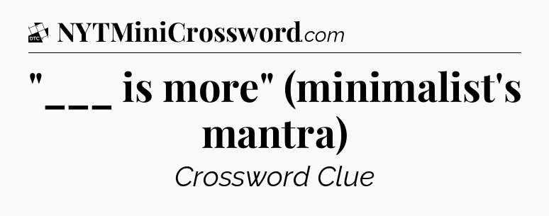 The clue “”___ is more” (minimalist’s mantra)” most recently appeared in a Daily Themed Classic Crossword on March 30, 2023.