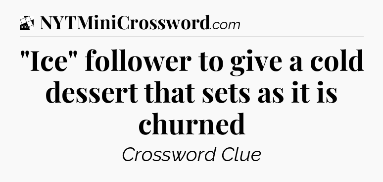 The clue “”Ice” follower to give a cold dessert that sets as it is churned” most recently appeared in a Daily Themed Classic Crossword on March 4, 2024.