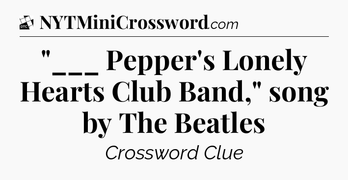 This simple page contains the answer to the crossword clue ‘“___ Pepper’s Lonely Hearts Club Band,” song by The Beatles‘ that was published in Daily Themed Crossword March 7 2023.